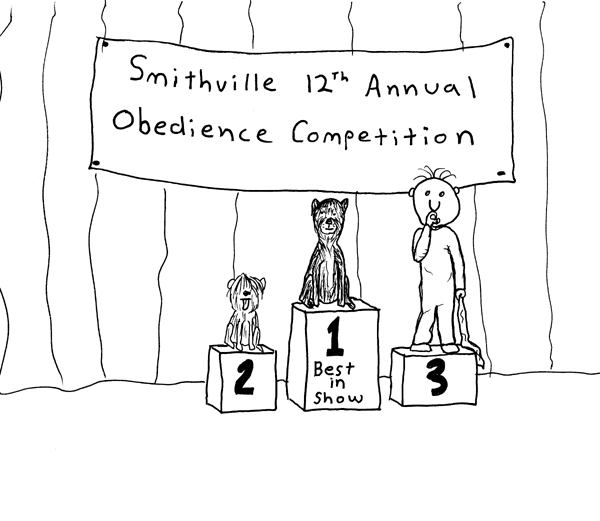 Kid comes in third in the obedience competition