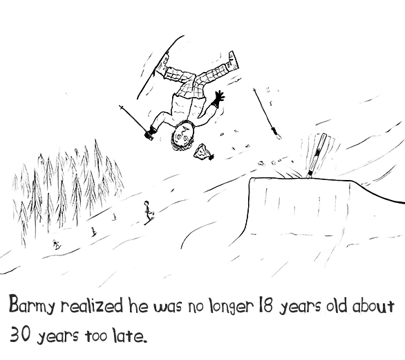 Denial works tremendously well, but there are a few unfortunate side effects. Most notable among them is what’s known (by me anyway) as Denial-induced Stupidity. Rather than bore you with long technical descriptions, I’ll just lay it out in this recent example on the ski hill: