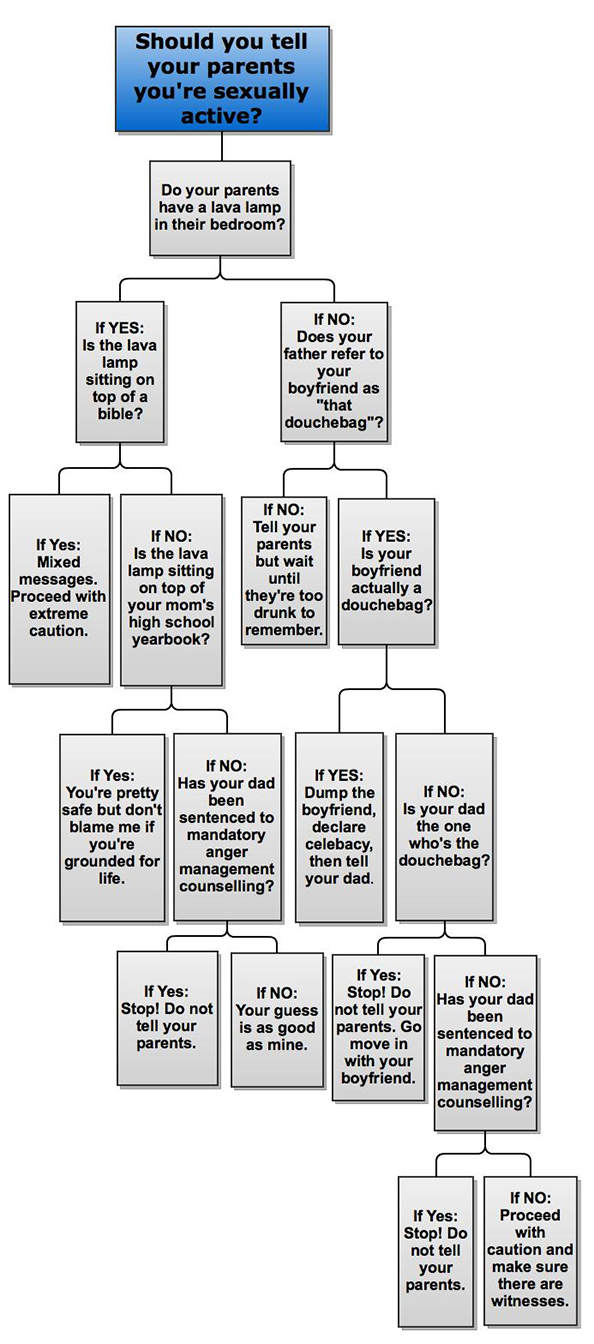 We all face tough questions as we’re growing up.Β It seemed to me that there ought to be some kind of rubric to help kids work through life’s most difficult decisions. So I came up with a few tools to help kids decide what to share about themselves with their parents. You may want to print them out on nice little wallet-sized cards and laminate them.