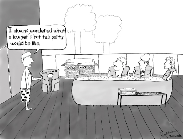 Every once in a while I end up with a drawing but no punch line. The cartoon below was one of those. I thought it would be fun to let others take a shot at generating a punch line for me. I took it to a group of dad bloggers to see what they could come up with. The winning quote for the guy holding the lifejacket came from Idaho Dad who writes a great blog that you’ll find right here. He’s a 17-year stay-at-home-dad veteran and writes about various aspects of being a parent. Go check it out.